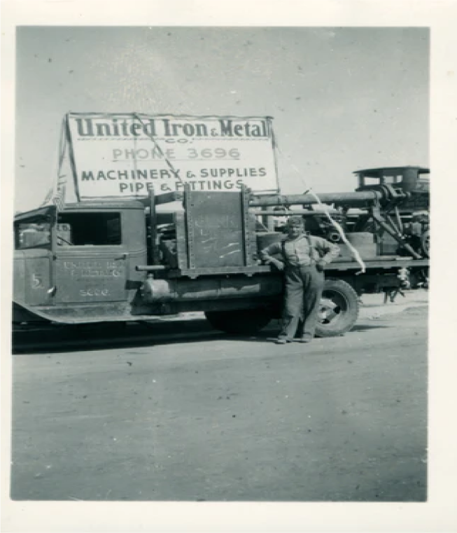 In 1900 my gramps landed in NYC and jumped a westbound train. After 2000 drunken miles, he was tossed out of the car in the high desert, miraculously landing unscathed amidst a pile of iron. The Machine Age was in high gear, and its detritus offered plenty enough for him to start a successful scrap metal concern.